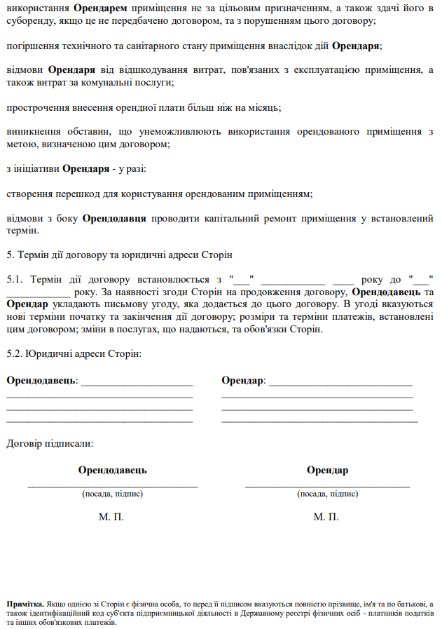Примірний договір оренди приміщення підприємствами, що надають послуги населенню та пасажирам