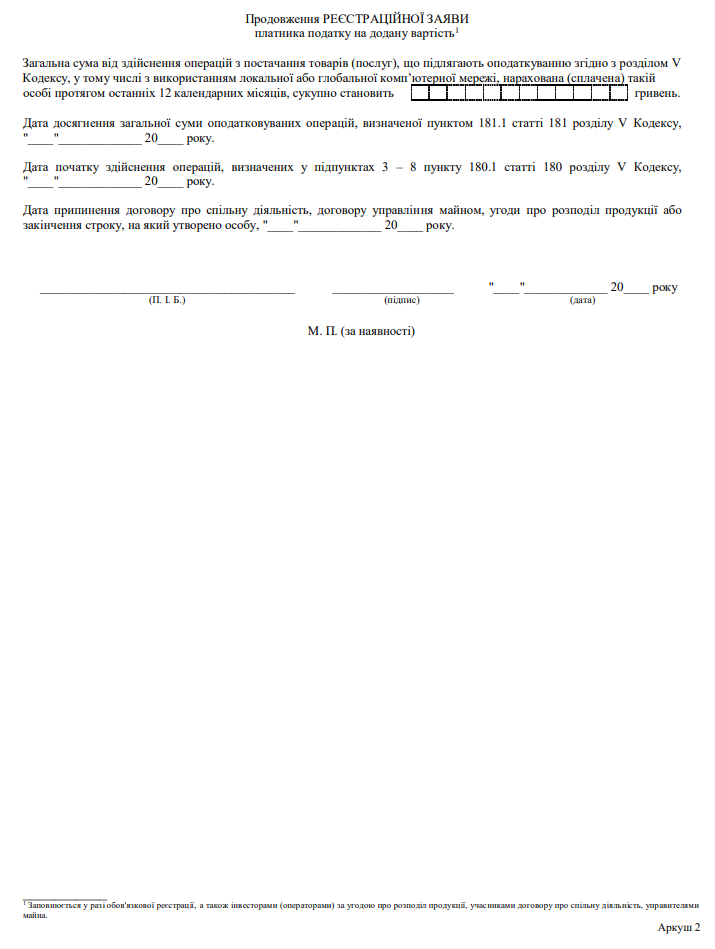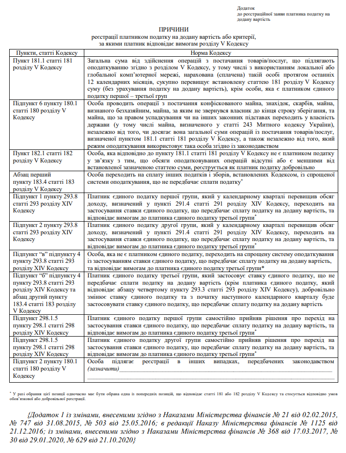 "Реєстраційна заява за ф. №1-ПДВ" зразок