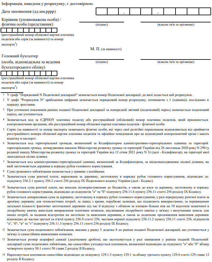 Завантажити бланк: "Розрахунки з рентної плати за спеціальне використання лісових ресурсів"