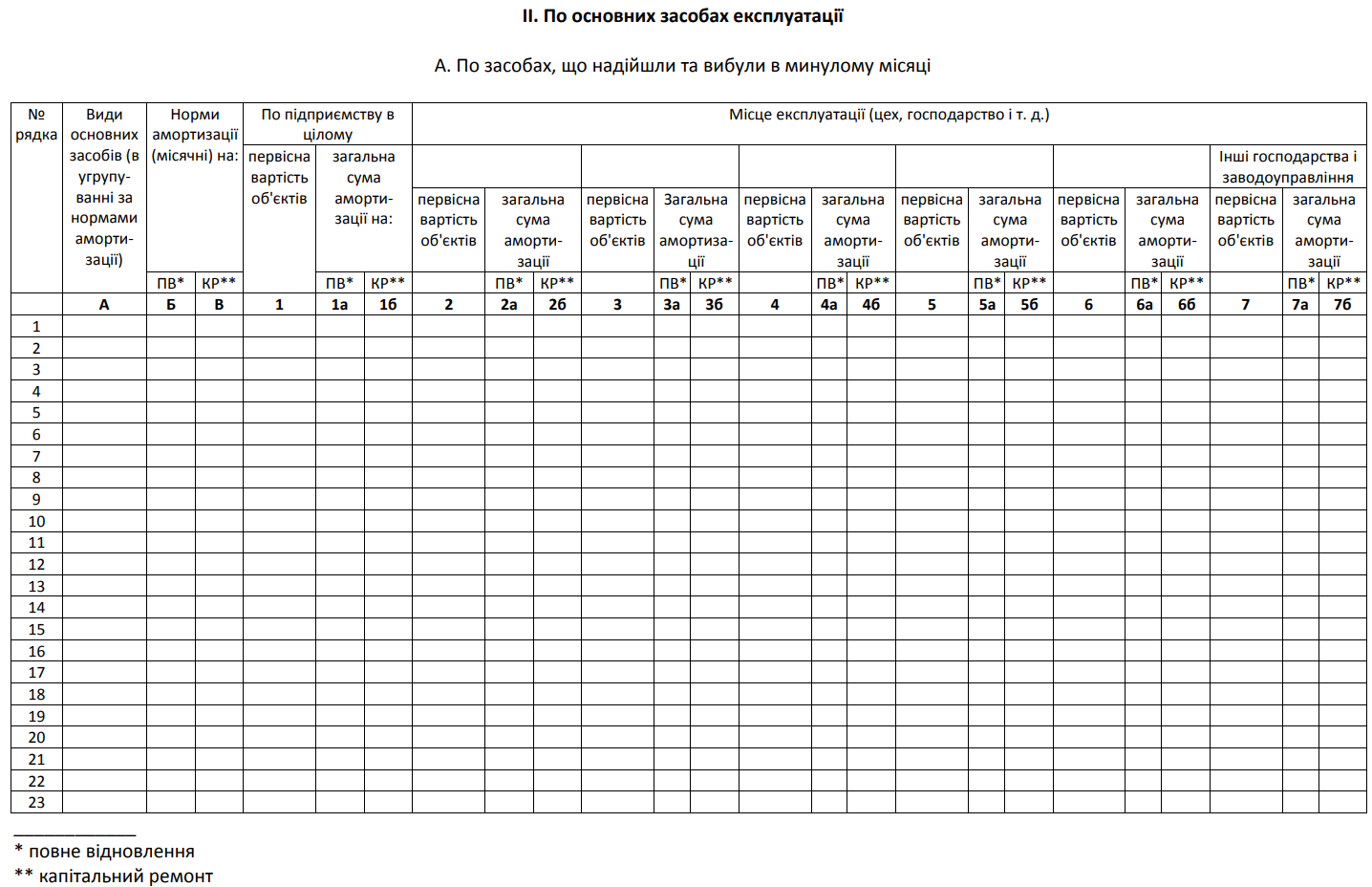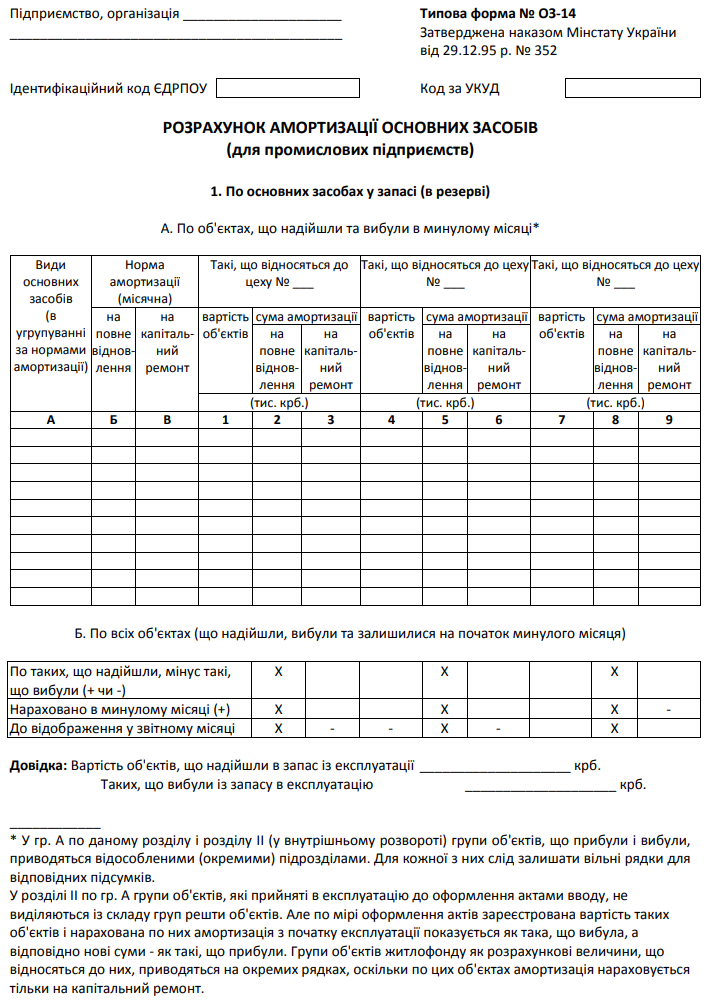 Повна назва бланку: Розрахунок амортизації основних засобів (для промислових підприємств) (форма №ОЗ-14).