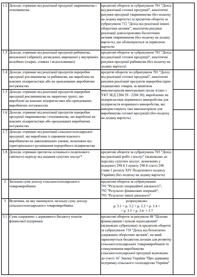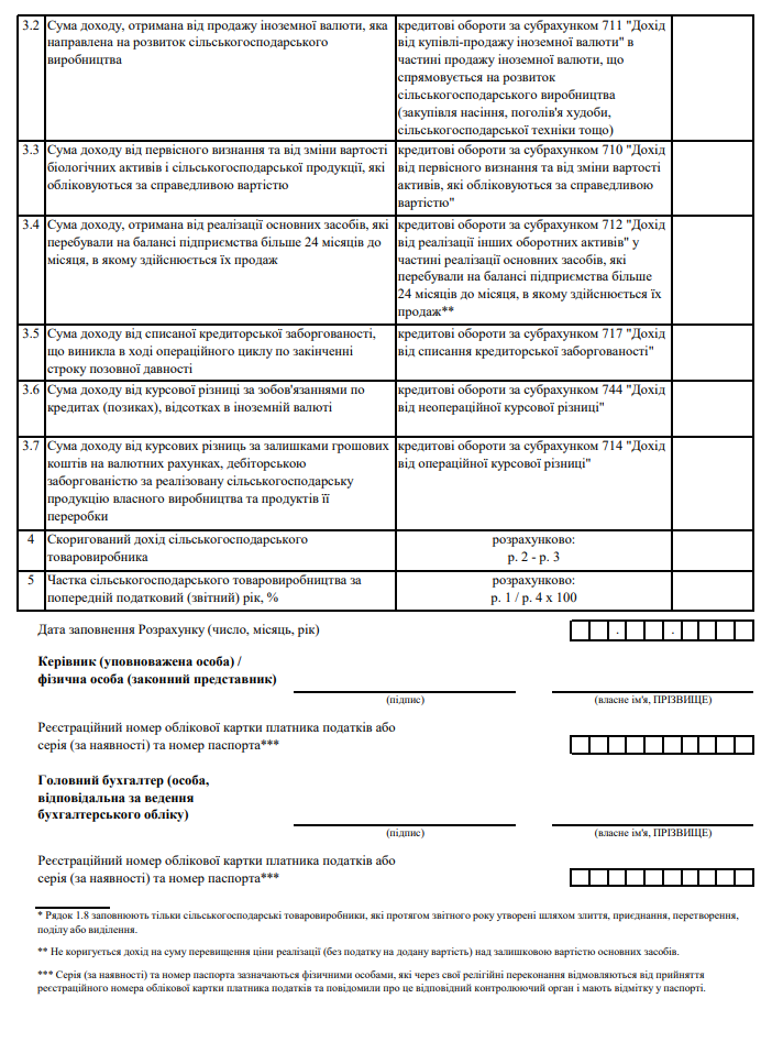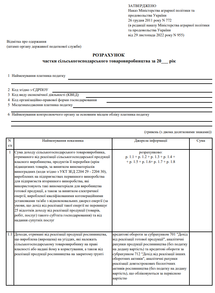 Повна назва бланку: Розрахунок частки сільськогосподарського товаровиробництва