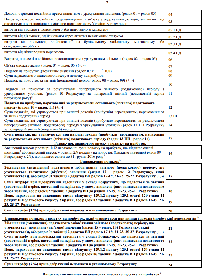 "Розрахунок податку на прибуток постійного представництва нерезидента" зразок