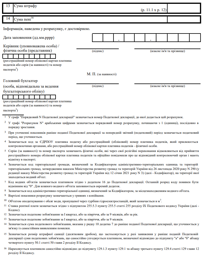 "Розрахунок з рентної плати за спецвикористання води (гідроенергетика)" зразок