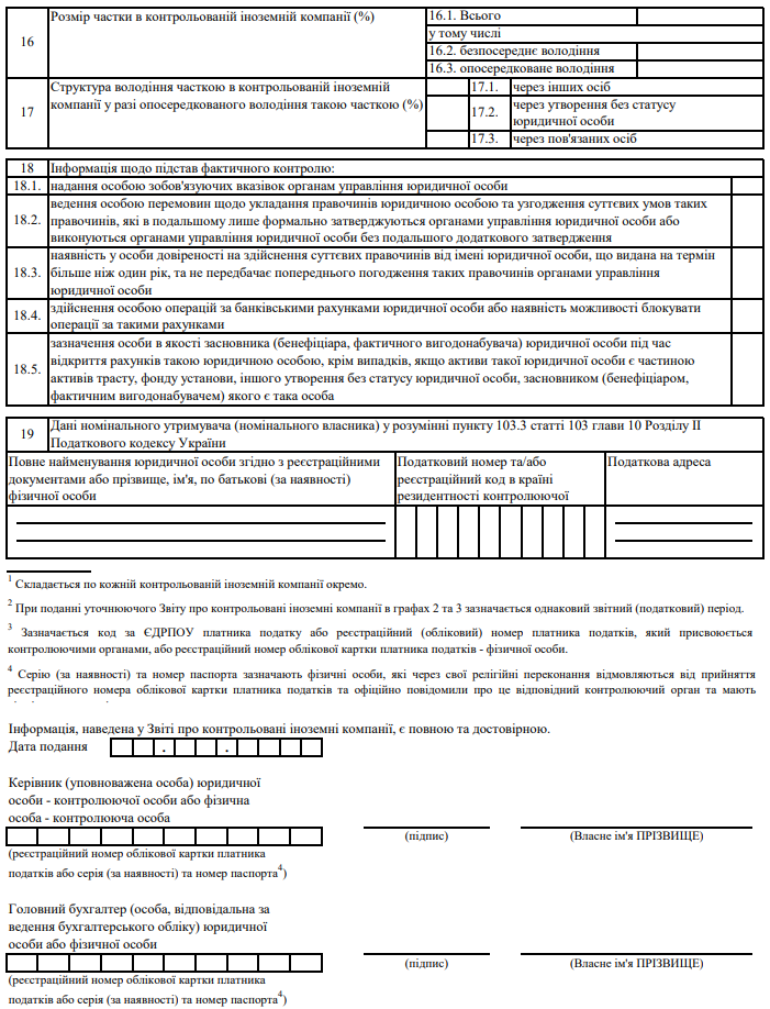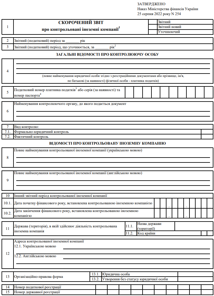 Повна назва бланку: Скорочений звіт про контрольовані іноземні компанії