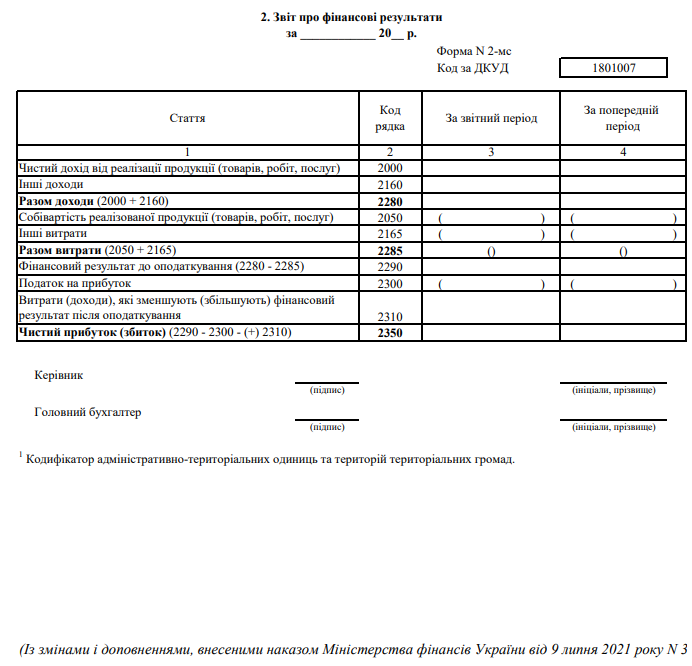 Спрощений фінансовий звіт СМП. Ф. №1-мс, 2-мс