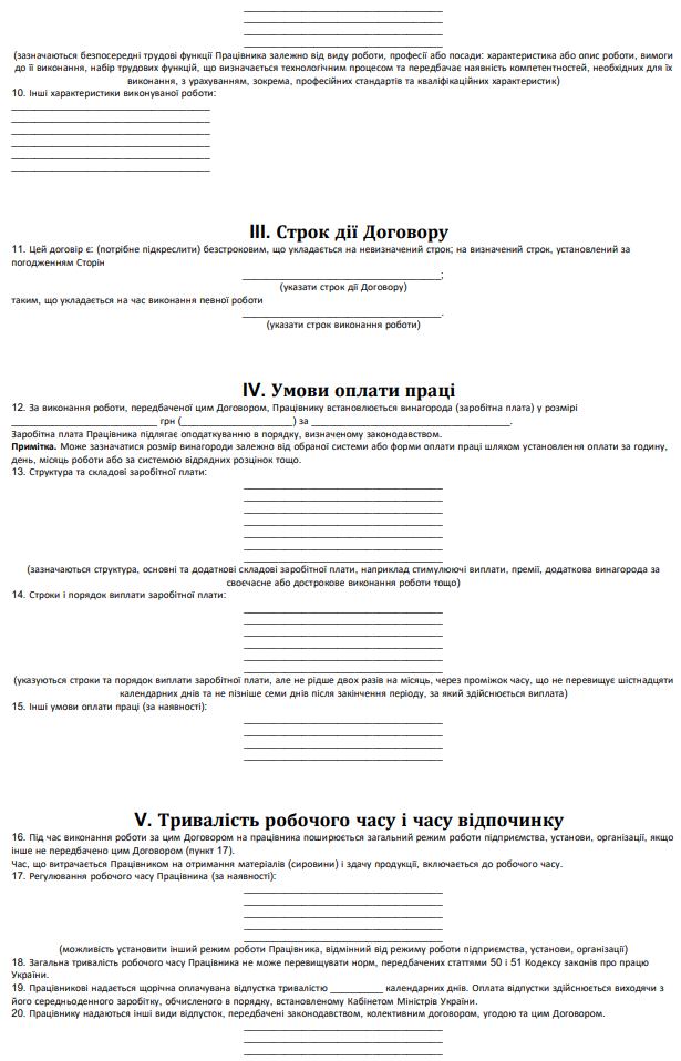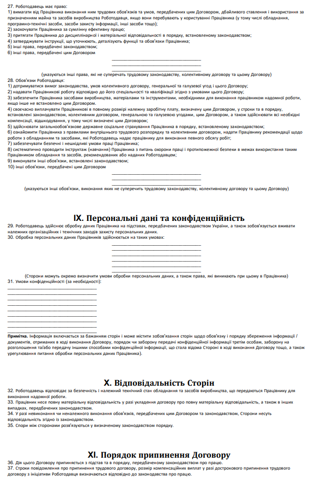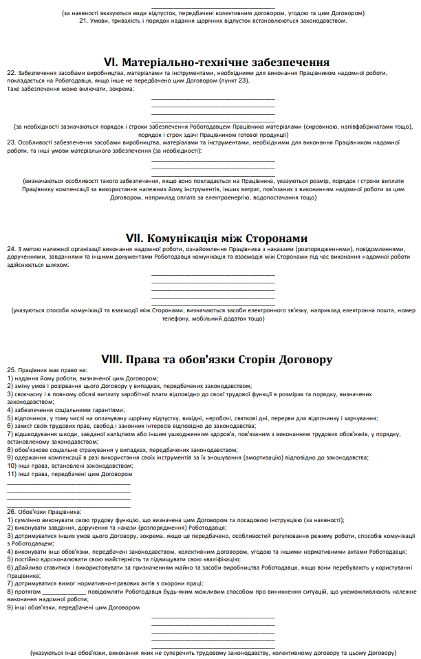 Типова форма трудового договору про надомну роботу