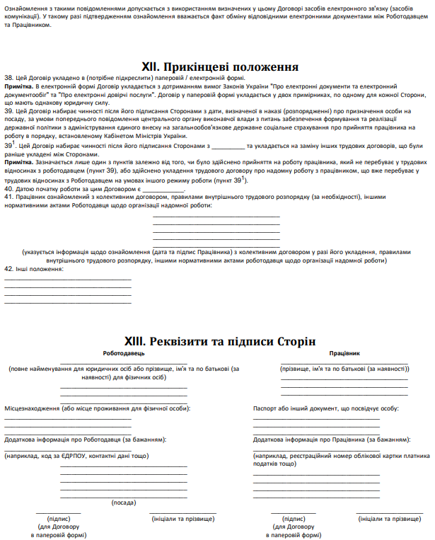 "Типова форма трудового договору про надомну роботу" зразок