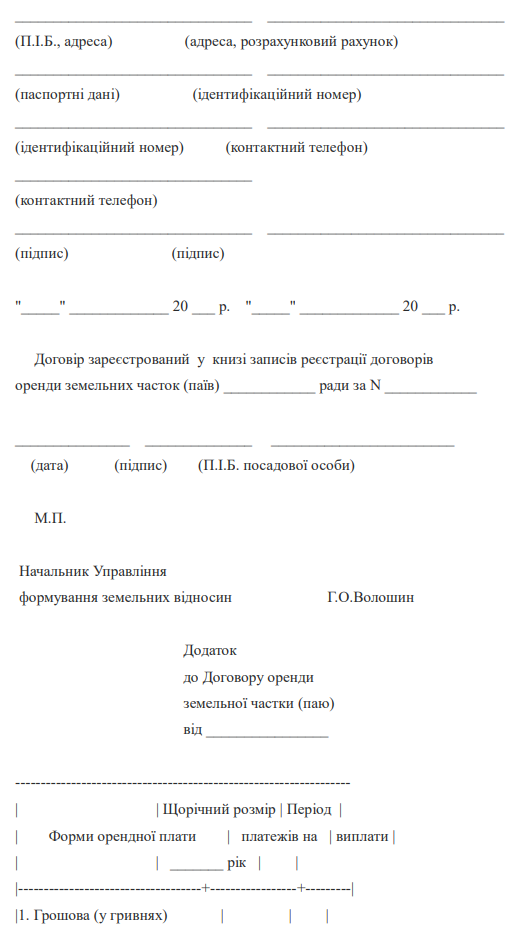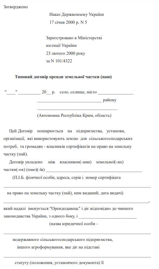 Типовий договір оренди земельної частки (паю)