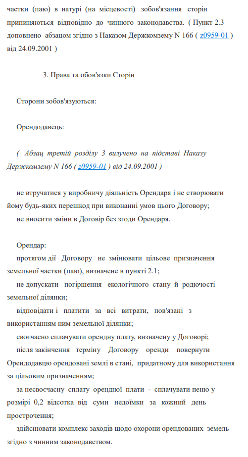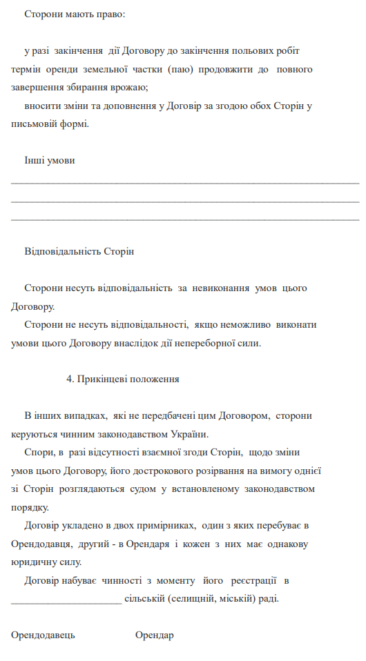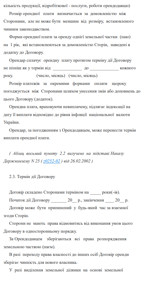 "Типовий договір оренди земельної частки (паю)" зразок