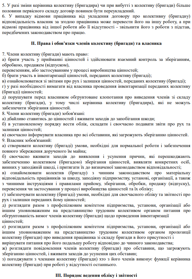 Типовий договір про колективну (бригадну) матеріальну відповідальність