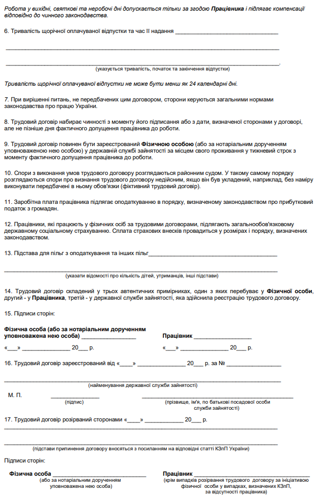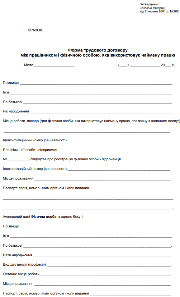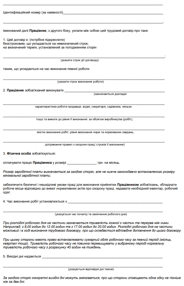 Затверджено бланк "Трудовий договір між працівником і фізичною особою"