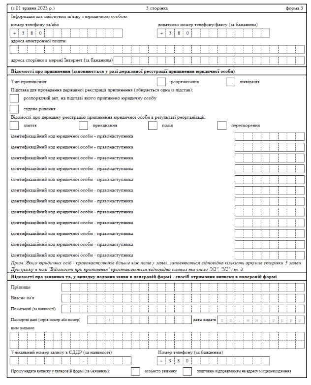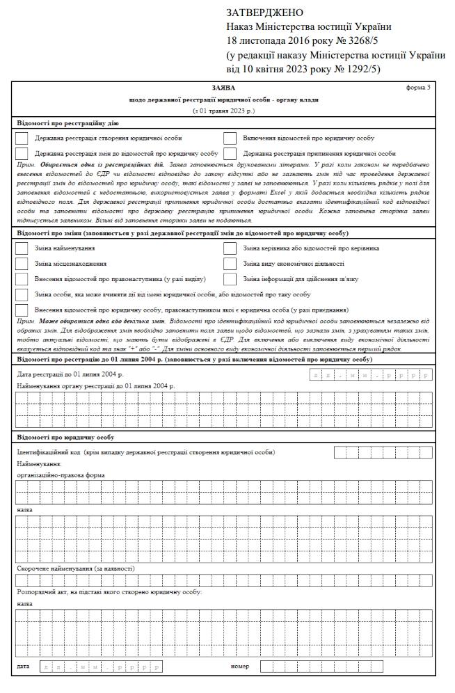 Затверджено бланк "Заява про держреєстрацію змін до відомостей про юрособу, які містяться в ЄДР (форма 3)"