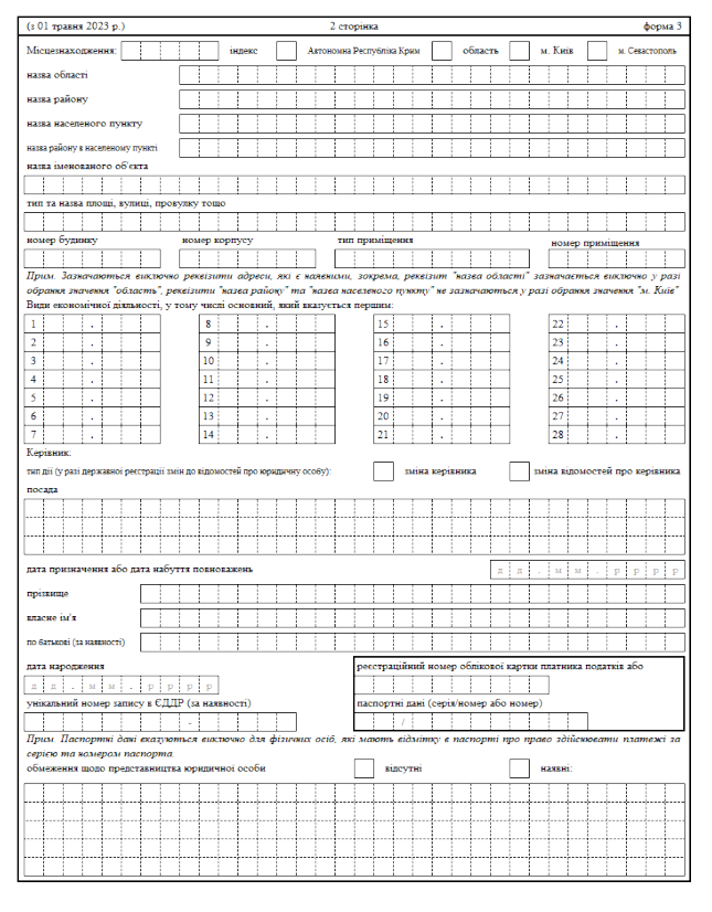 Заява про держреєстрацію змін до відомостей про юрособу, які містяться в ЄДР (форма 3)