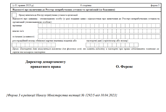 - Держ. орган: Держреєстратор