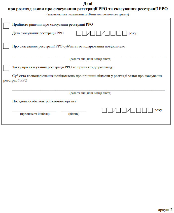 Заява про скасування реєстрації РРО (ф. №4-РРО)