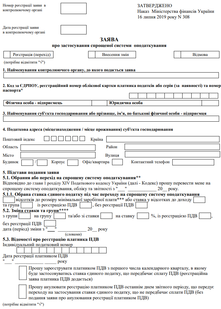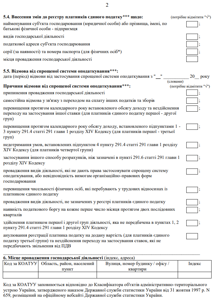 Повна назва бланку: Заява про відмову від застосування спрощеної системи оподаткування