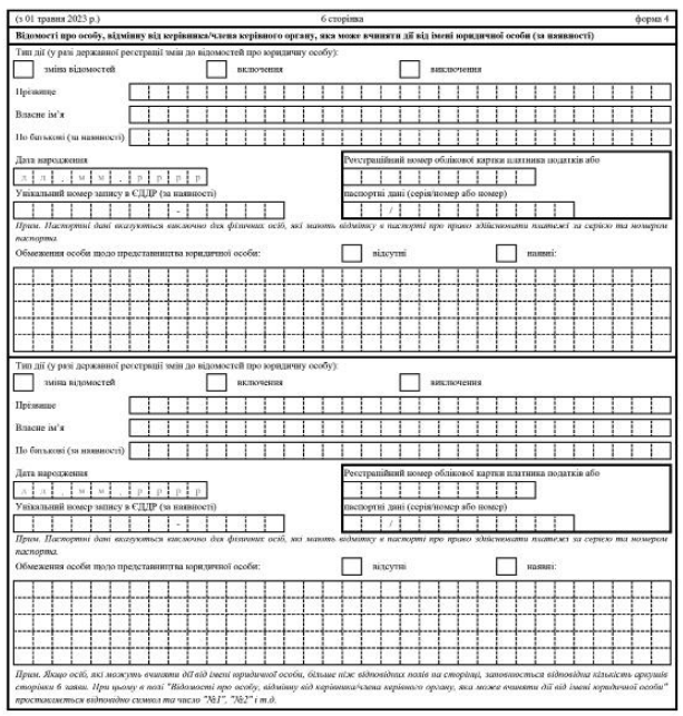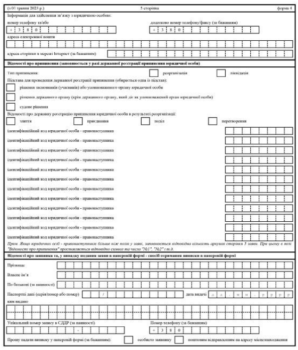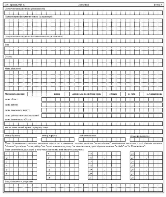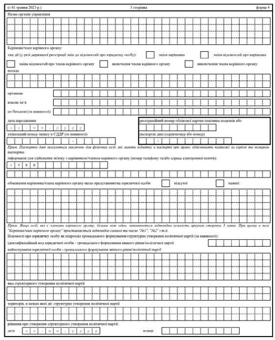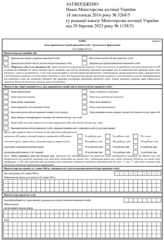 Повна назва бланку: Заява щодо державної реєстрації юридичної особи - громадського формування (форма 4).