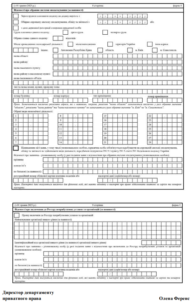 Затверджено бланк "Заява щодо державної реєстрації юридичної особи - громадського формування (форма 4)"