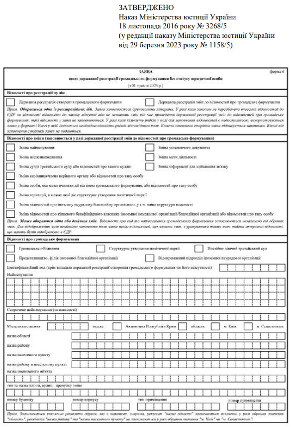 Повна назва бланку: Заява щодо підтвердження відомостей про кінцевого бенефіціарного власника юридичної особи (форма 6).