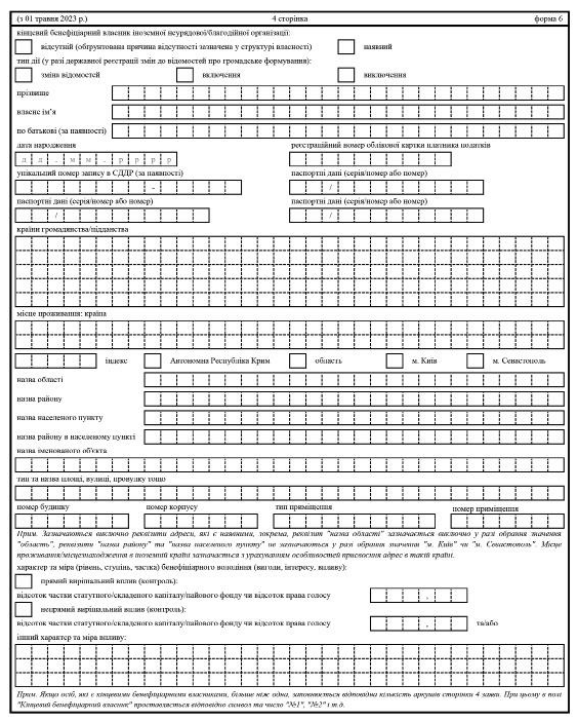 Затверджено бланк "Заява щодо підтвердження відомостей про кінцевого бенефіціарного власника юридичної особи (форма 6)"