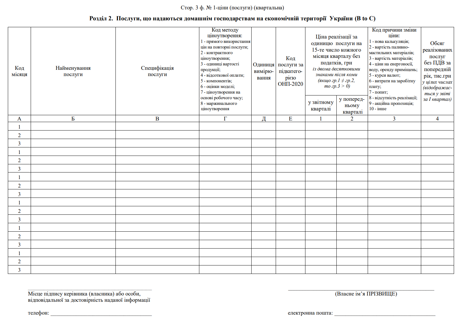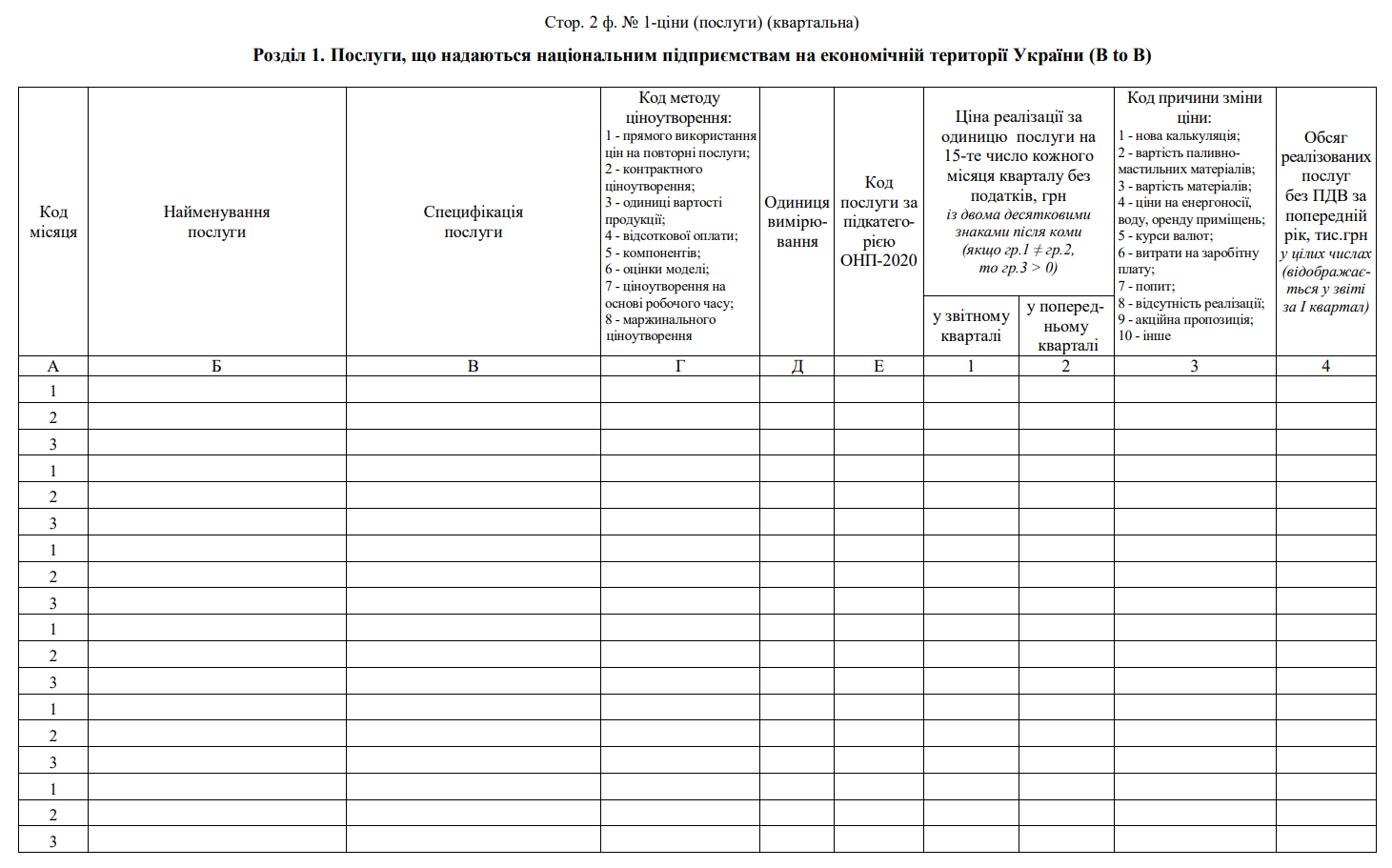 Повна назва бланку: Звіт про ціни виробників послуг (форма №1-ціни (послуги)).