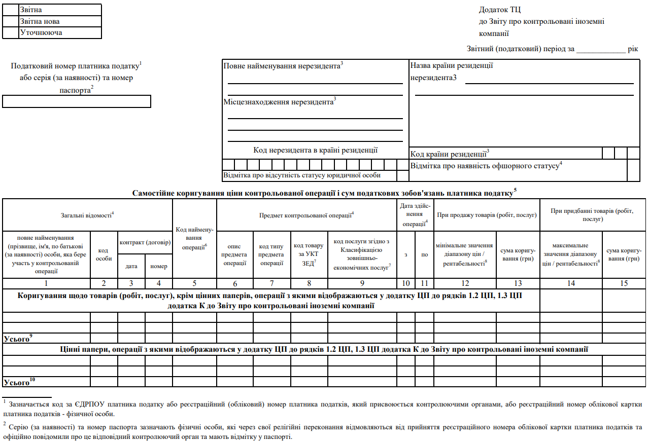 Завантажити бланк: "Звіт про контрольовані іноземні компанії"