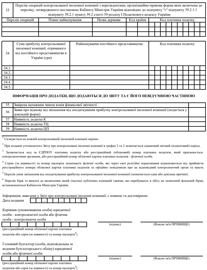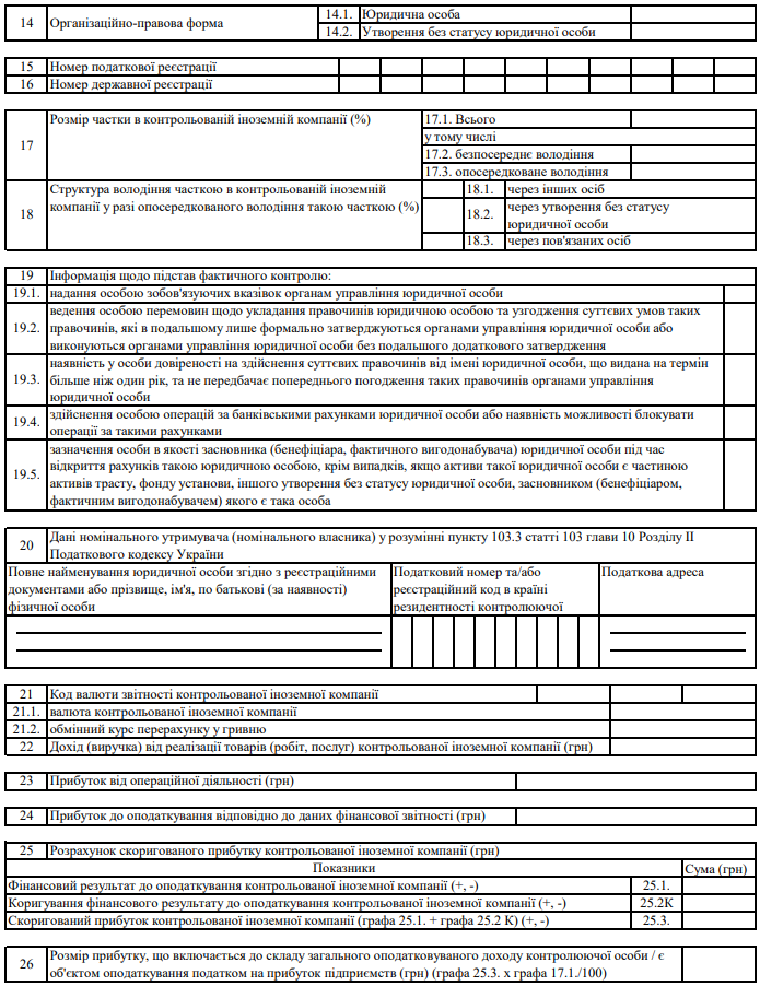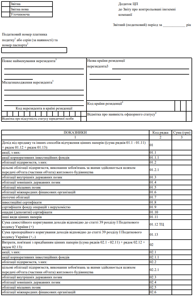 Повна назва бланку: Звіт про контрольовані іноземні компанії