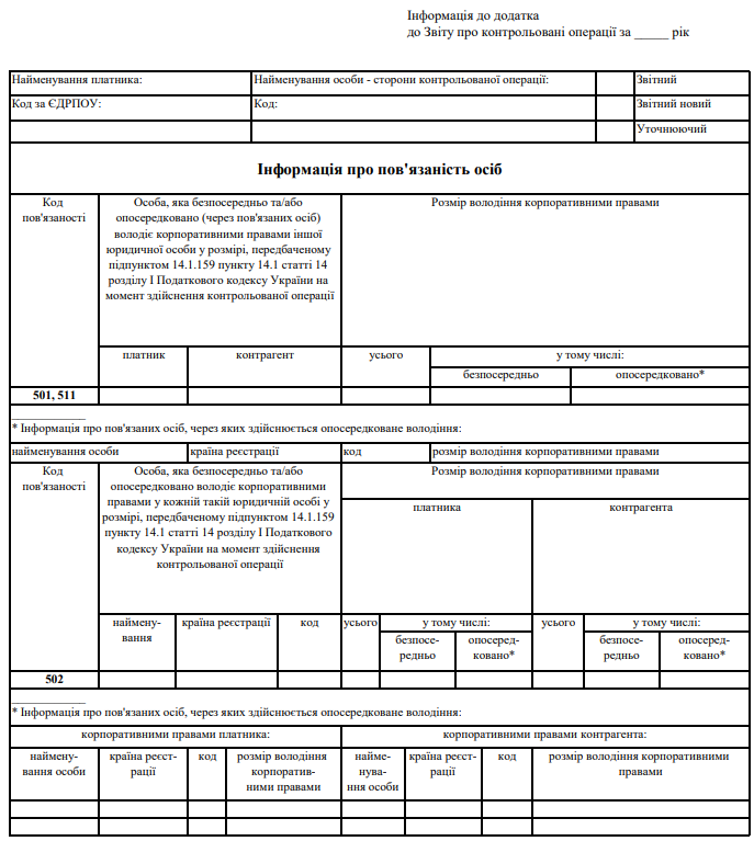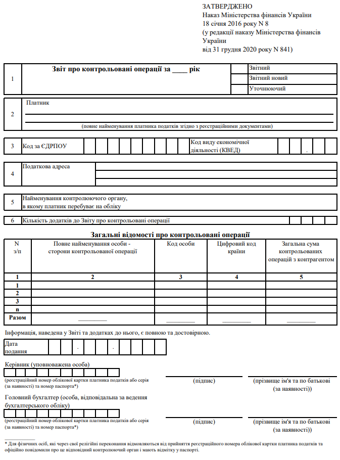 Повна назва бланку: Звіт про контрольовані операції