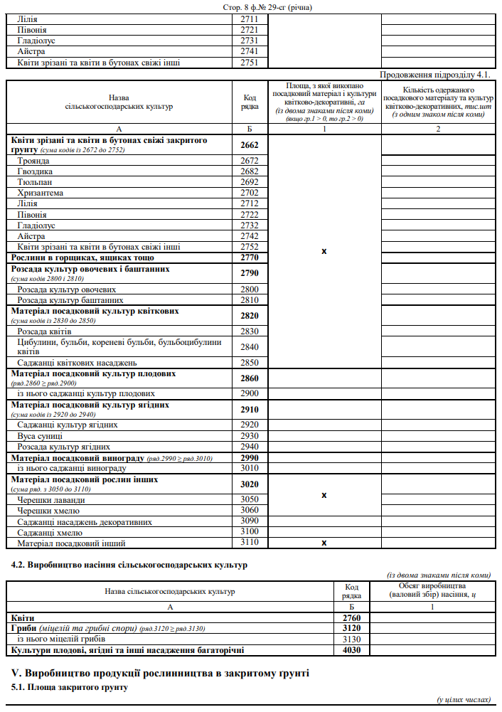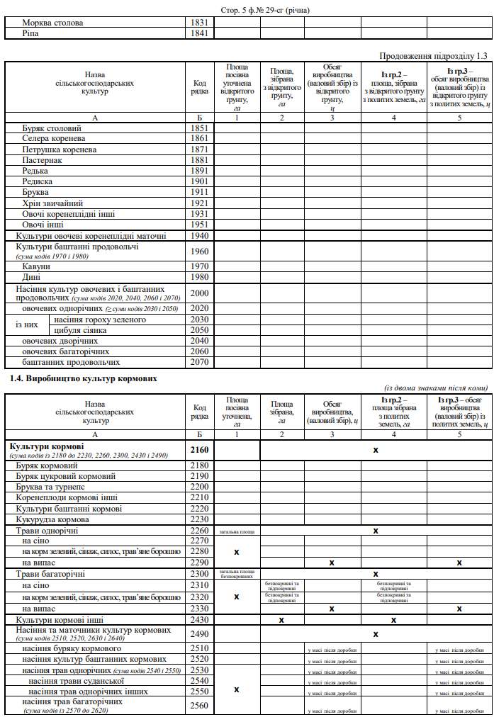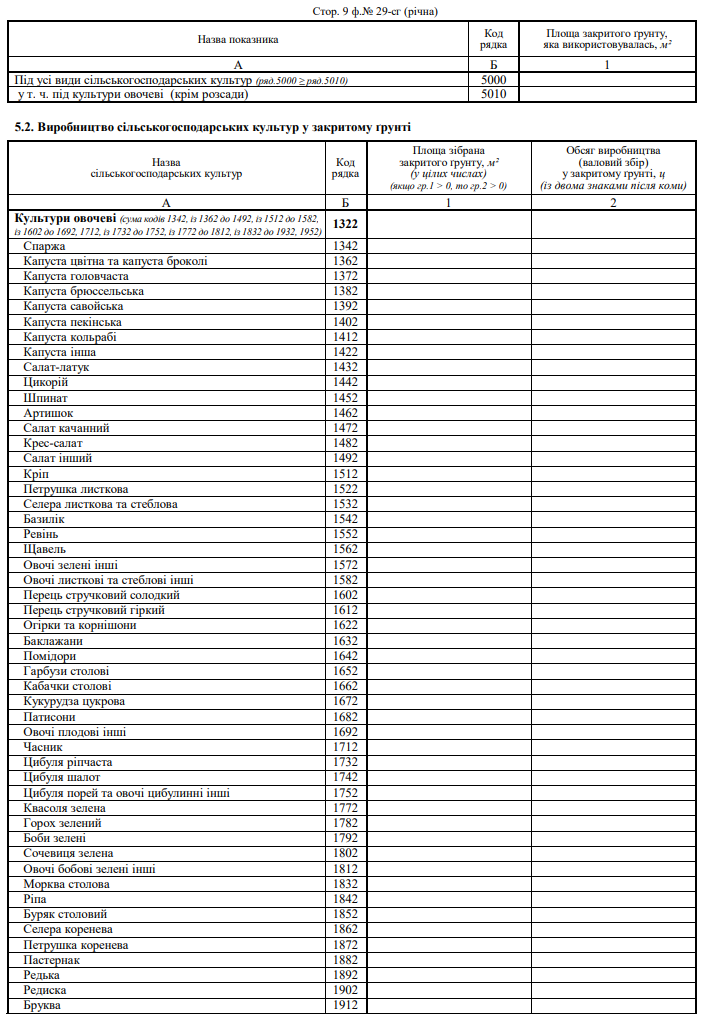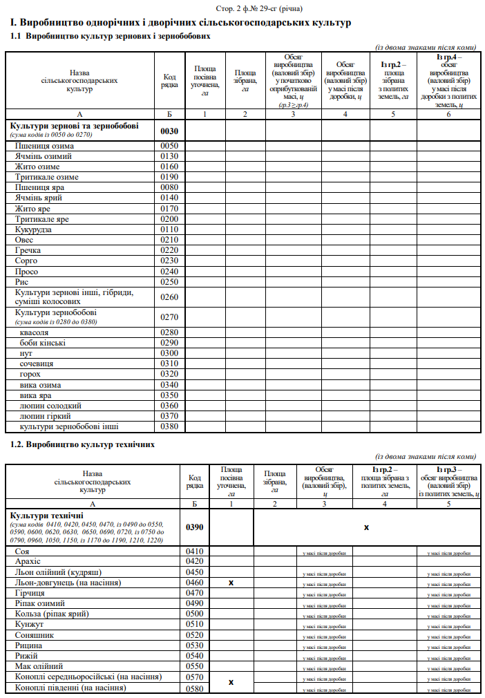 Звіт про площі та валові збори сільгоспкультур (форма №29-сг, річна)