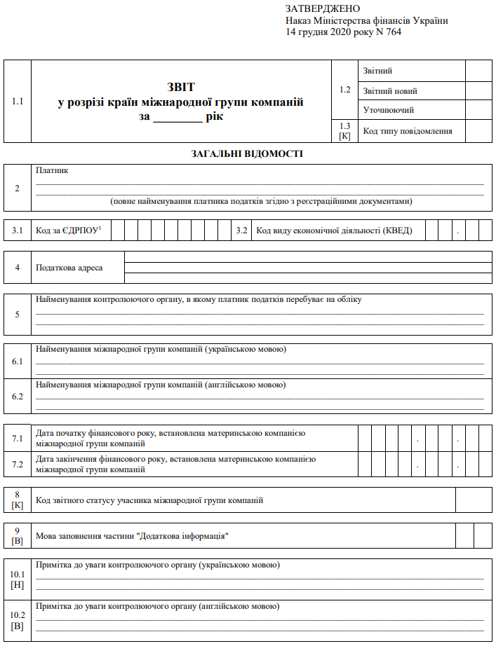 Повна назва бланку: Звіт у розрізі країн міжнародної групи компаній.