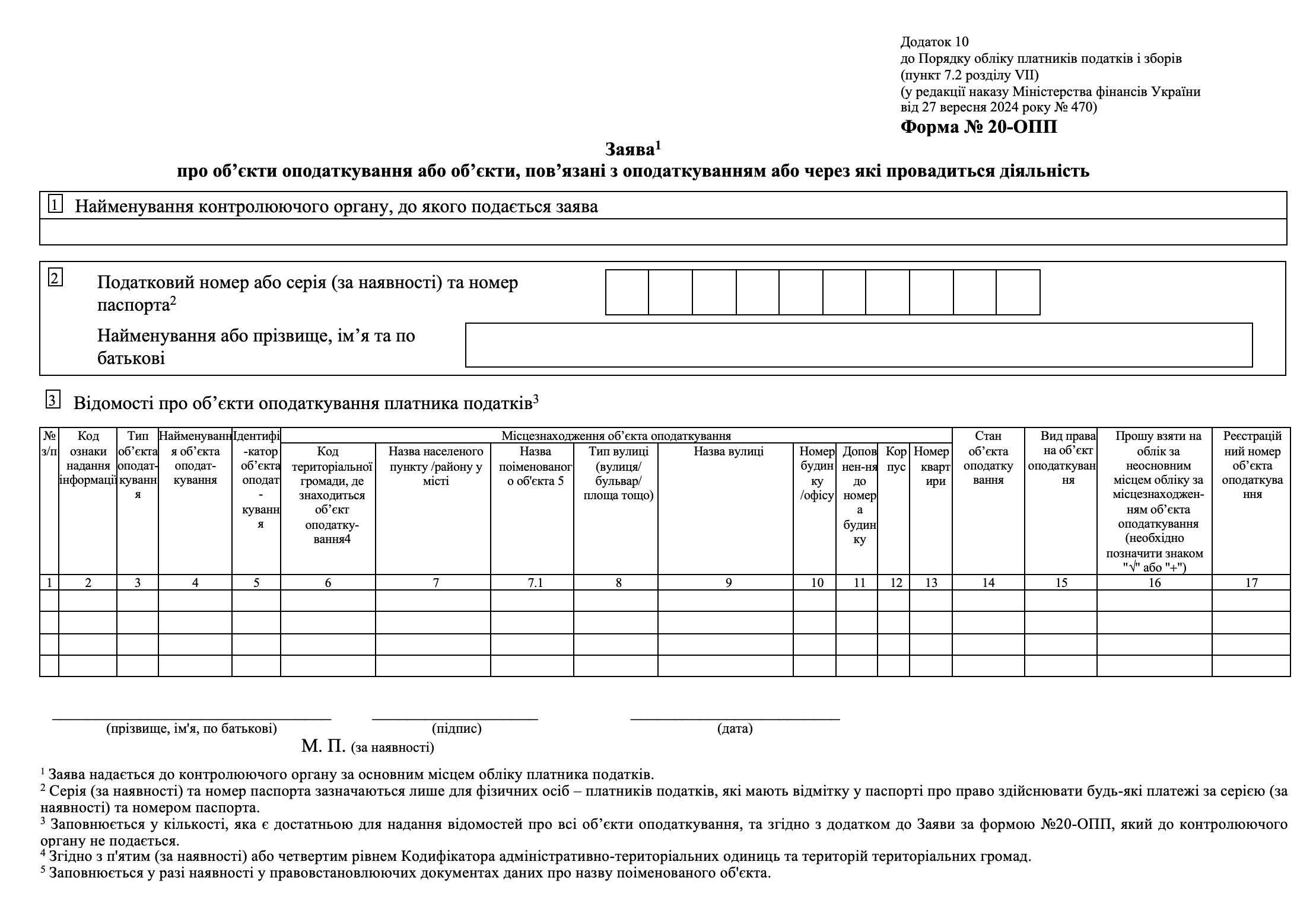 20-ОПП при зміні юридичної адреси приклад