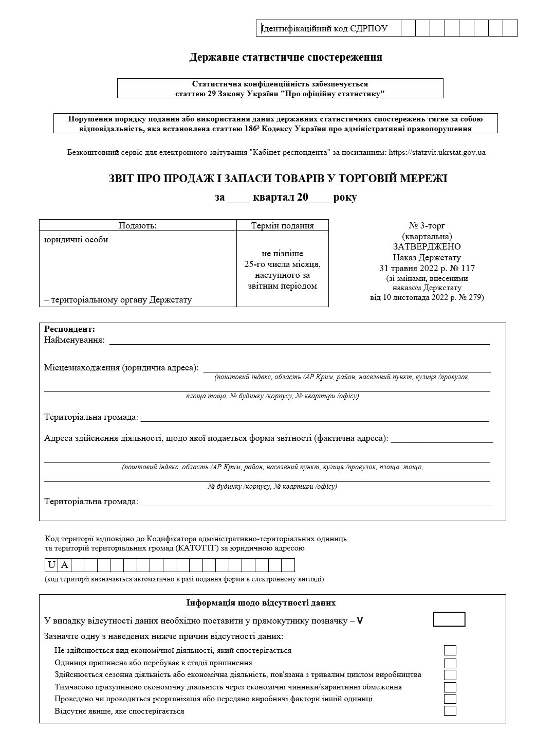 1. Вказання даних у звітах за ІІ, ІІІ, ІV квартали як наростаючого підсумку з початку року. Однак форма передбачає введення окремих даних щодо роздрібного товарообороту за кожен з кварталів.