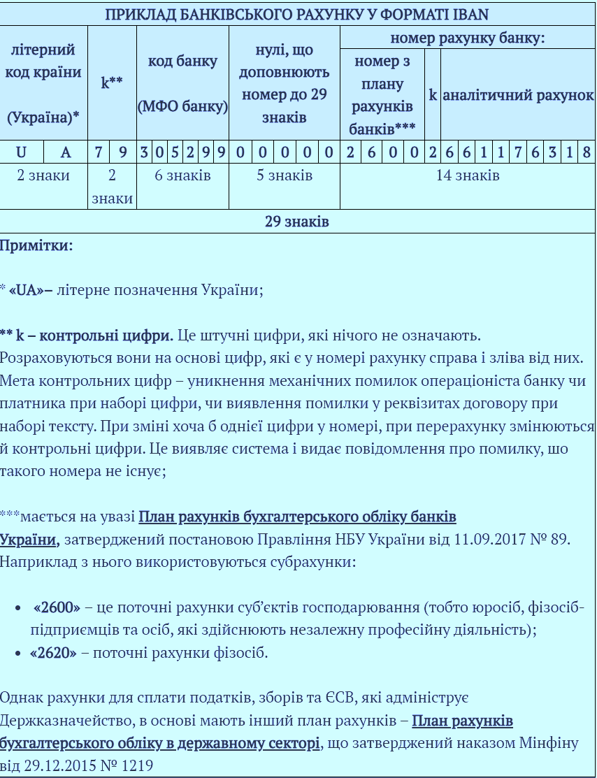 - Різна кількість цифр у номері рахунку у різних країнах (Україна - 14; Мальта - 18, Польща, Кіпр - 16, Німеччина - 10);