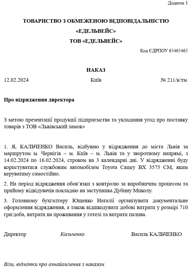 - "Наказ про відрядження директора"
