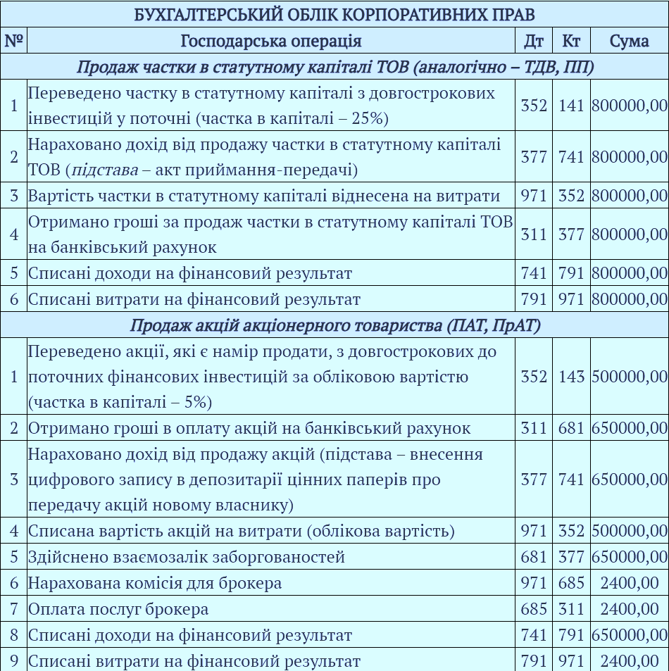 Бухгалтерський облік корпоративних прав