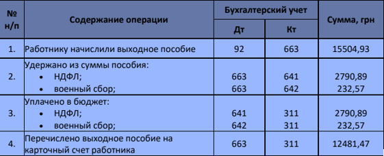Приклад. Розрахунок вихідної допомоги та її бухгалтерський облік