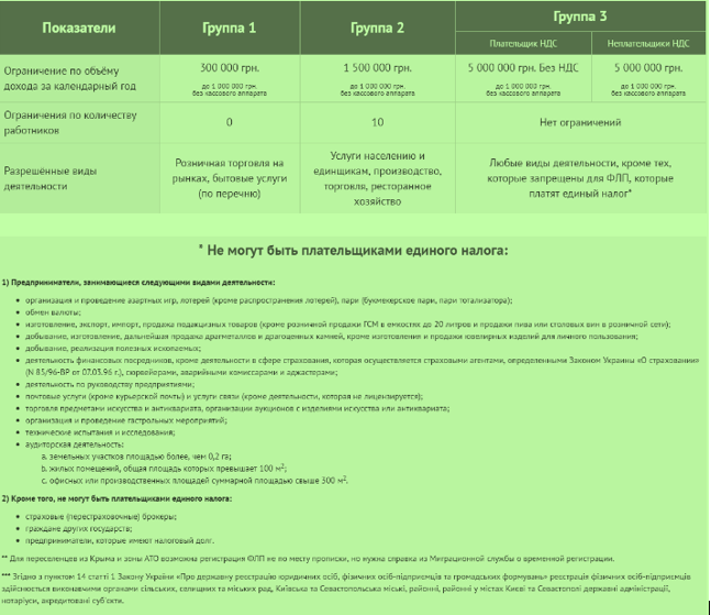 - Єдиний податок для 1, 2, 3, 4 груп.